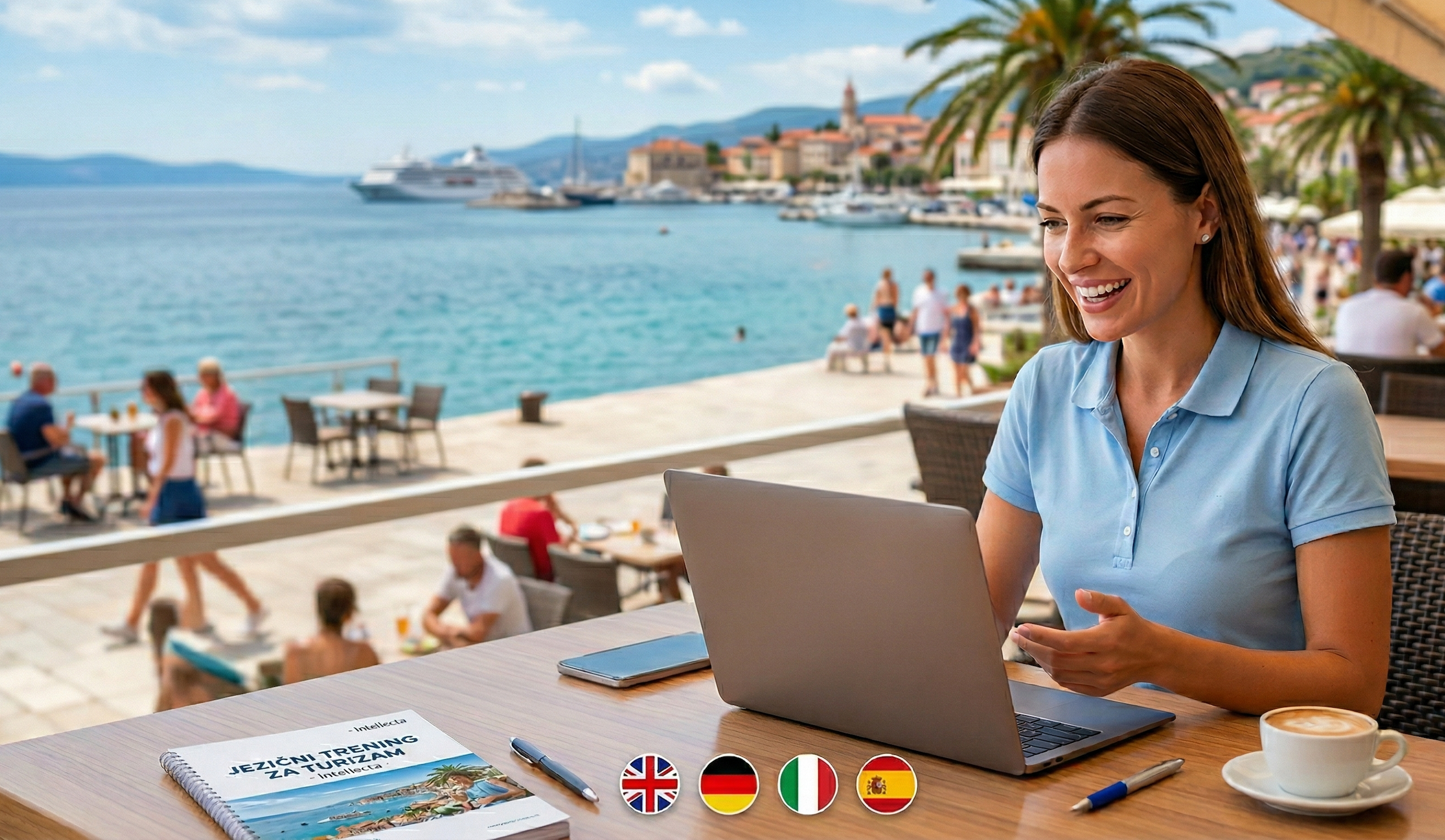Vrijeme je da prestaneš raditi u jeziku i počneš raditi na svom sustavu komunikacije. Intellectin jezični trening za turizam dizajniran je da te pripremi za sezonu brzo, jasno i bez blokade.